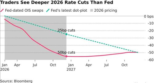 Economists project a 50,000 increase in nonfarm payrolls and a 4.5% unemployment rate, consistent with a sluggish, but not rapidly deteriorating, labor market (our full preview will hit later today). The US data will help answer the question entering 2026 of whether the Fed is close to being done easing, after three straight cuts, or if it has to move more aggressively.