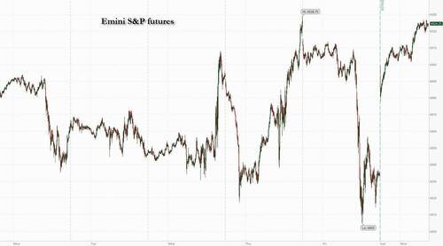 Stocks are set to recoup some of Friday’s tech-driven losses, with a big week of data releases ahead, as the last full week of 2025 comes witgh a bang. Still, sentiment seems a little shaky, with rising signs of skepticism over AI and debate about the extent of rate cuts next year. As of 8:00am ET, S&P 500 futures and Nasdaq 100 contracts both rose 0.5% after Friday’s 1.1% cash market slump in which technology sector fell 2.9%. In premarket trading, Nvidia leads Mag 7 gains, climbing 1.1% with the rest of the group largely in the green. European stocks climbed 0.8%. 10-year Treasury yields ticked lower and the dollar index traded at session lows as the yen surged on renewed bets the BOJ would hike rates this week. Bitcoin rallied 1.3% to $89,652, adding to signs that risk sentiment is steadying. Today’ key events include the December Empire manufacturing (8:30am) and NAHB housing market index (10am). Major releases later this week include November CPI Thursday. Fed speakers include Governor Miran (9:30am, 11am) and New York Fed’s Williams (10:30am).