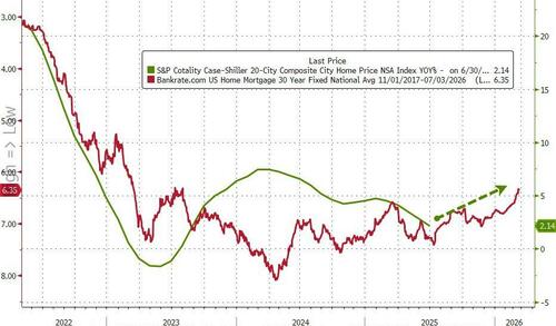 The question remains, that after slashing rates by 100bps (last year), home prices have started to decline (with significant lag)… is that what The Fed wants this year too, now that the rate-cutting cycle has restarted?