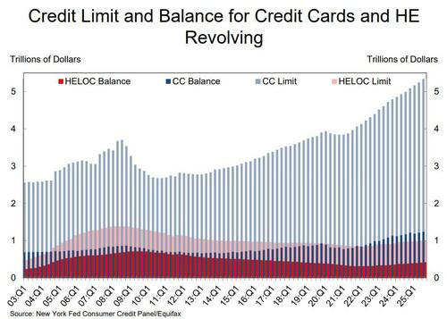Surprising exactly no-one, the report showed that total household debt increased by $197 billion (1%) in Q3 2025, to a new record high of $18.59 trillion. split between $13.5 trillion in housing debt and $5.1 trillion in non-housing debt.