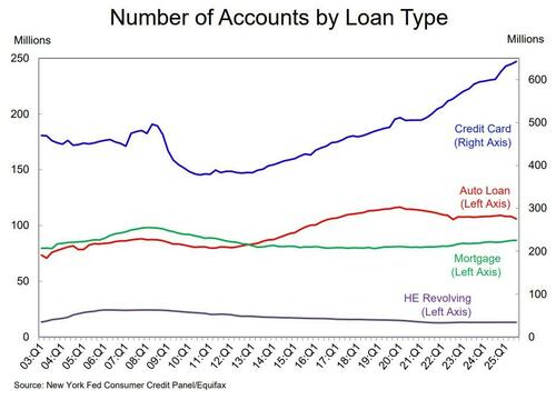 The only silver lining in the report is that housing debt levels and delinquencies have stabilized: “Household debt balances are growing at a moderate pace, with delinquency rates stabilizing,” Donghoon Lee, an economic research advisor at the New York Fed, said in a press release accompanying the figures. “The relatively low mortgage delinquency rates reflect the housing market’s resilience, driven by ample home equity and tight underwriting standards.”