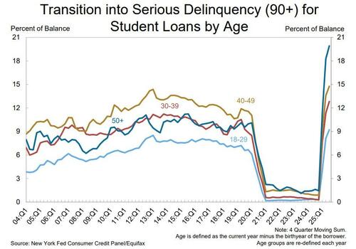 Taking a closer look at the ground zero of the current consumption crisis, namely student Loans, where outstanding debt stood at $1.65 trillion in Q3 2025.