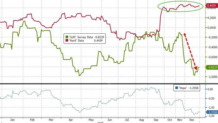 With ‘hard’ data showing resilience into year-end, ‘soft’ survey data has cratered (not helped by the government shutdown)…