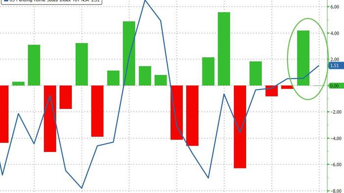 However, today’s pending home sales data disappointed, printing unchanged MoM versus expectations of a 1.2% MoM rise (after an upwardly revised 4.2% MoM rise in August)…