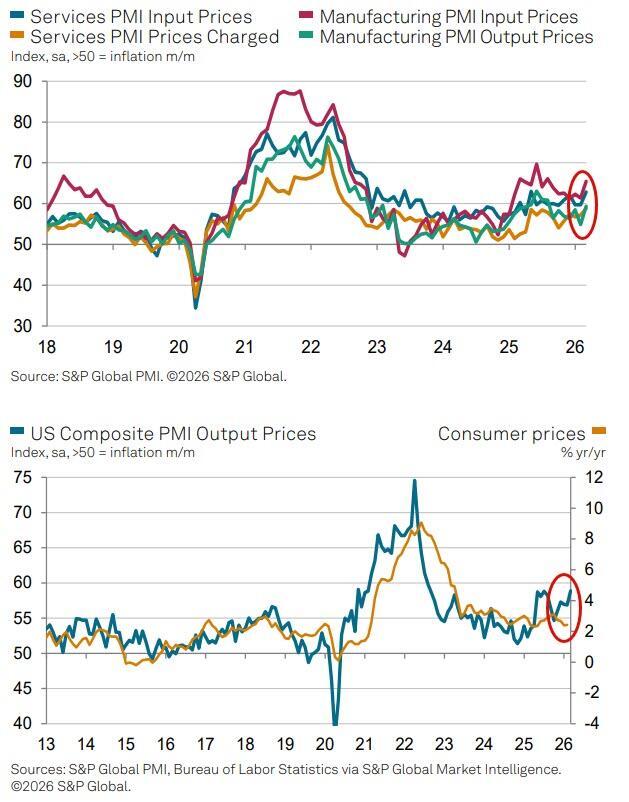 The consensus was right, but the picture was mixed with Manufacturing PMI surprising to the upside (52.4 vs 51.5 exp vs 51.6 prior) – highest since Oct 2025.