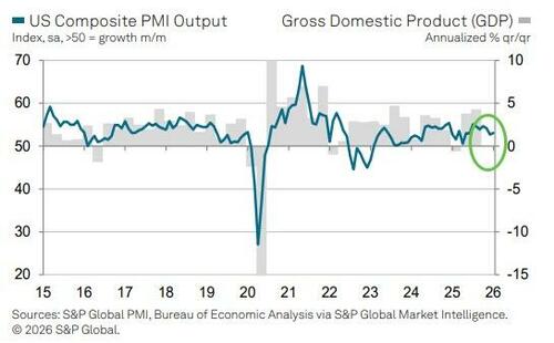 S&P Global’s US Services PMI signaled a better than expected expansion of 52.7 in January (52.5 exp), rebounding from April 2025 lows.