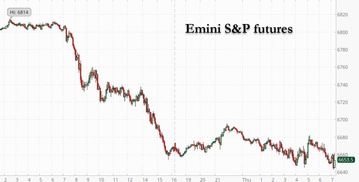 Global stocks are in freefall after a fresh surge in oil and gas prices deepened concerns that the war in the Middle East will fuel inflation and hit growth. We saw clear escalation in Iran conflicts yesterday given the South Pars gas field strike and Qatar LNG facilities strike, both of which have effectively shut down all hope for a quick resumption of LNG flows from the Gulf. Bonds also tumbled amid a second day of major central bank meetings, and just to keep everyone on the same pace, gold and bitcoin also tumbled, despite some de-escalation effort (Trump said that Israel will not conduct further attacks on Iran’s main natural gas facility), but selloff pressure in global equities remains. Micron gave strong earnings and guidance yesterday after close (almost double the Street’s Q3 EPS guidance with companies noting strong AI demand), but the stock has been down 5% amid global risk-off moves overnight and high CapEx concerns. Only oil (and specifically Brent now that the market is pricing in a US oil export ban), LNG and various energy products are soaring, and threatening to send the world into a stagflationary spiral. As of 8:00 am ET, futures for the S&P 500 slipped 0.3% after the US benchmark wiped out gains for the week in the previous session. Nasdaq futures were down 0.5% while European equities were hit especially hard 2.1%, heading for the lowest level this year, as European energy prices exploded. A benchmark for Asian stocks dropped 2.8%.