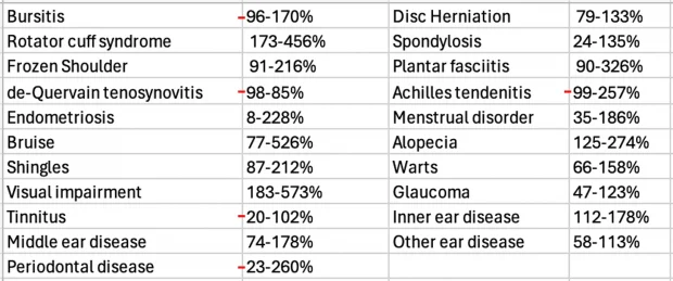 Oddly enough, one of the few datasets we got access to on the dangers of the COVID vaccines originated from South Korea, where electronic medical records from the national health insurance service (totaling roughly half of Seoul’s population) were analyzed, which revealed a large increase in many common disorders.
