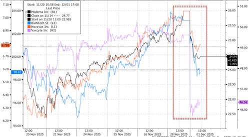 By late morning, Vaccine makers dropped on the memo: Moderna -6%, BioNTech -4.3%, Novavax -4%, Vaxcyte -6.6%.