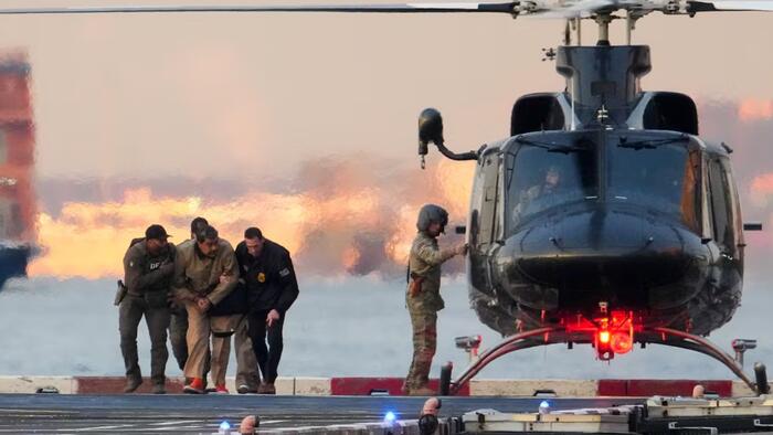 BREAKING: Nicolás Maduro surrounded by heavy security as he is transported to New York City court ahead of his arraignment. pic.twitter.com/2EqrMrNKxe