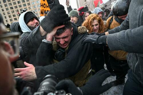 In some cases the rioters attack their own people. This man was beaten and nearly mobbed simply for wearing a camo jacket. Activists are heard screaming “He’s one of us!”