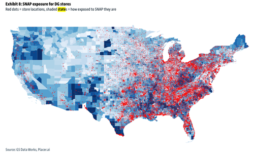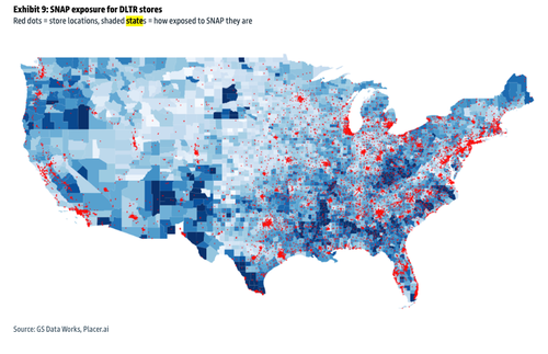 Recall from our note citing Goldman analysts over the summer: here is the SNAP exposure for discount chains Dollar General and Dollar Tree.