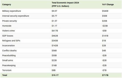 Last year, the economic impact of violence reached $19.1 trillion, or $717 billion higher than the previous year.