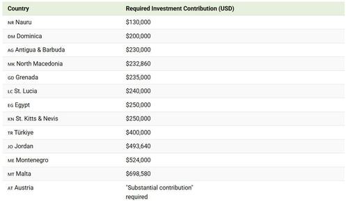 At the top end, Malta and Montenegro require close to or more than $500,000, while Austria demands a “substantial contribution,” often exceeding several million.