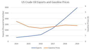 As the above chart shows, Murphy’s predictions have been vindicated. Increasing crude oil exports have not led to higher gas prices, and there’s no reason to expect that they should. In contrast, gas prices would increase if the U.S were to cease exports, due to less global supply.