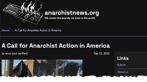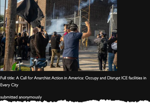AnarchistNews, the long-running anarcho-communist propaganda site, popular among Antifa militants and radical leftists, issued a movement order this week instructing “all anarchists across the country” to disrupt operations at ICE facilities in every city and to “celebrate life with fire against the death march of american law and order.”