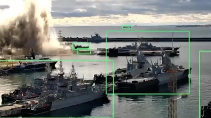 The SBU further called it the first attack of its kind, describing the joint operation with the Ukrainian Navy, and shared video showing a large explosion at the sprawling Russian port, home to a number of naval assets.