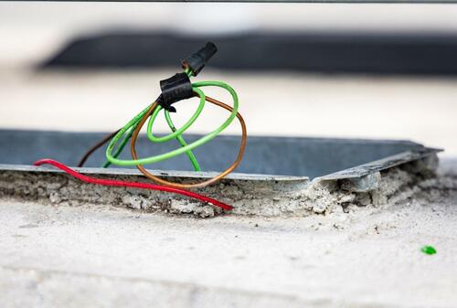 Wiring sits stripped of its copper interior after an incident of theft in Los Angeles on April 4, 2024. John Fredricks/The Epoch Times