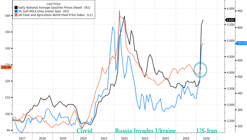 The downstream risk has been very clear: reduced fertilizer availability and higher input costs threaten to dent crop harvest yields later this year. In other words, this potentially sets the stage for a food price inflation spike: