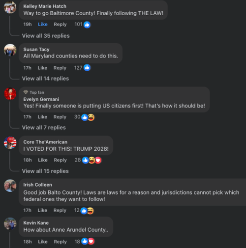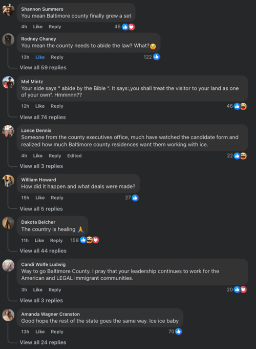 Despite restrictions from state leadership, Baltimore County has shown a willingness to cooperate with federal immigration enforcement. This is a small step toward restoring public safety and we appreciate the county’s commitment to updating its policies,” Associate Attorney General Stanley Woodward wrote in a statement.