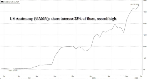 Beyond the risk of rare earth metals becoming a major focal point between Beijing and Washington (again), UAMY may also be rising, as antimony is a critical rare earth used in military production, especially in ammunition and other defense-related materials, as the sheer amount of air-delivered munitions used by U.S. and Israeli forces only suggests weapons production in the U.S. will have to ramp.