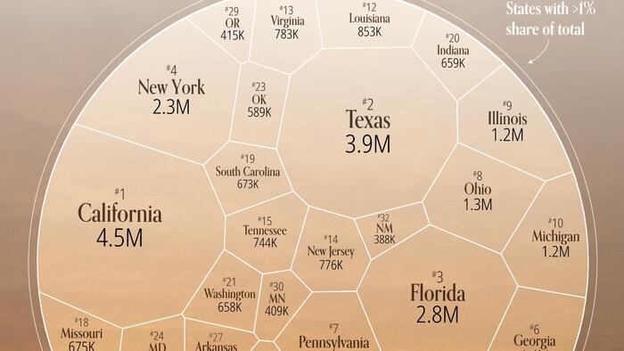 11 | Texas | TX | 13.1% | 3.9M |