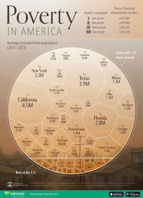 In this chart Visual Capitalist’s Pallavi Rao breaks down where the poor in America actually live, ranked by each state.