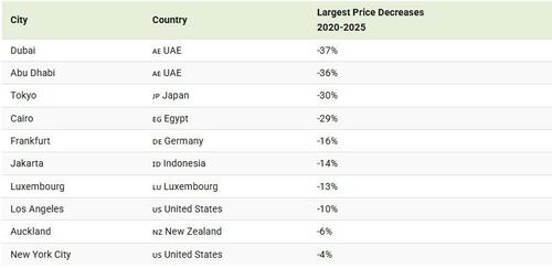 Beer prices have sunk the most in Dubai (-37%) amid easing liquor laws, which previously put a 30% tax on alcohol sales.