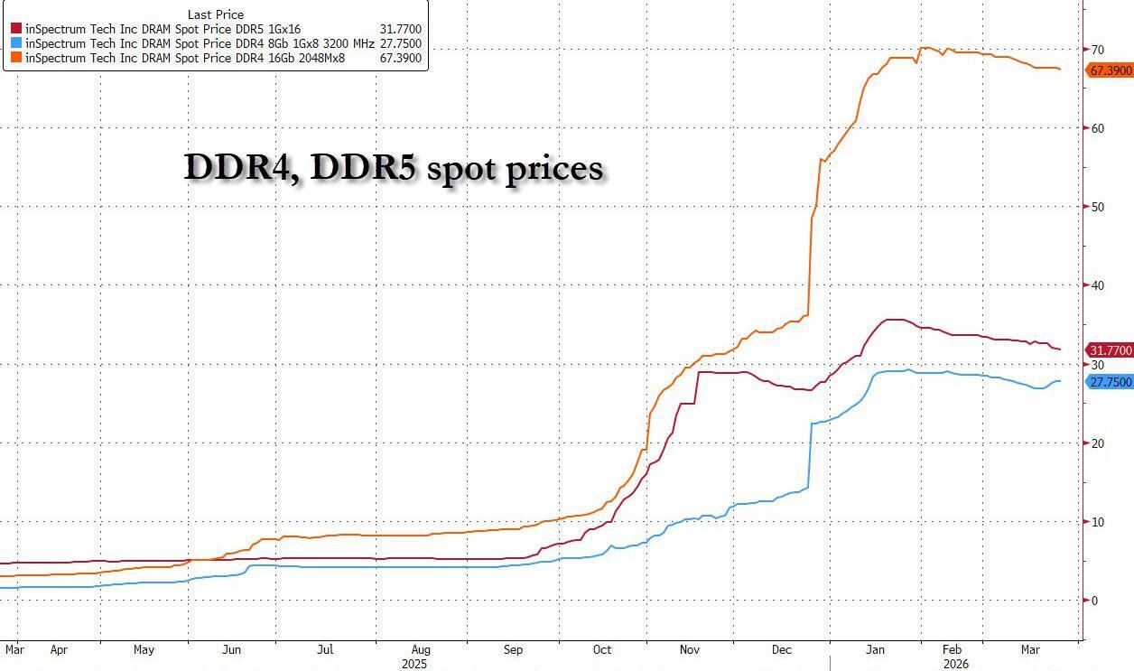 The implication is clear: if Google can achieve the same inference results with one-sixth of the hardware, then demand for memory chips will collapse in inverse proportion – the same ravenous demand that until recently sent DDR prices as much as 7x higher in just 3 months when the memory bottleneck for AI became apparent…