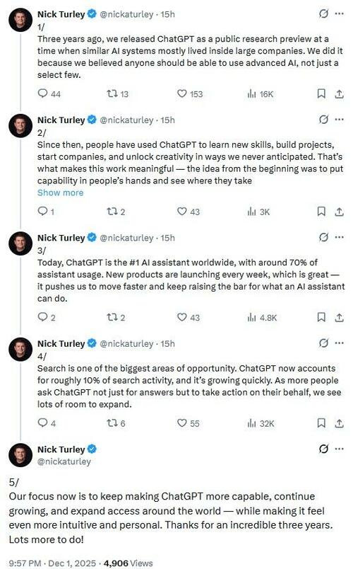 OpenAI’s head of ChatGPT, Nick Turley, said on X that “search is one of the biggest areas of opportunity. ChatGPT now accounts for roughly 10% of search activity, and it’s growing quickly.” He added that “our focus now is to keep making ChatGPT more capable, continue growing, and expand access around the world — while making it feel even more intuitive and personal.”