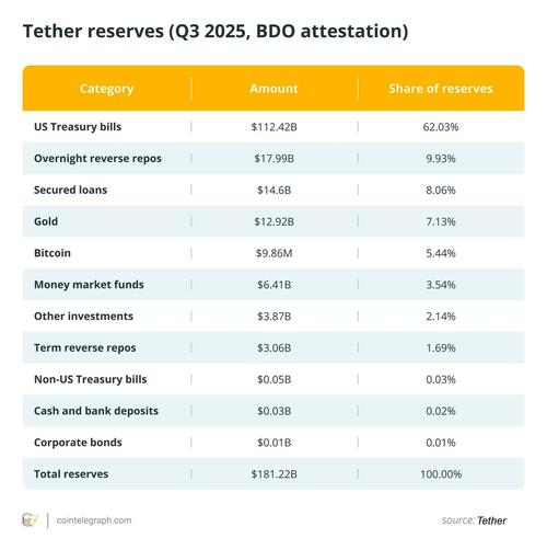 Tether no longer looks like a simple stablecoin company. It runs a balance sheet packed with short-term US Treasurys, reverse repos, gold and even Bitcoin. It mints and redeems dollars at scale and can freeze addresses at the request of law enforcement.