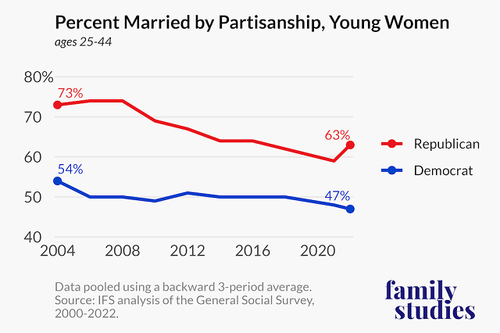 The marriage gap in voting is one of the most consistent predictors. And marriage rates have collapsed precisely during the period of divergence.