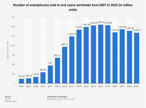 The curve steepens through the 2010s as smartphones became universal and platforms became more sophisticated.