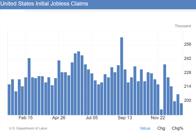 Initial jobless claims in the US fell by 9,000 from the previous week to 198,000 on the week ending January 10th, contrasting with market expectations of an increase to 215,000, to mark the second-lowest reading in two years. … In the meantime, initial unemployment claims from federal employees, which have been under scrutiny as markets measure the impact of the US government shutdown, rose by 170 to 646.