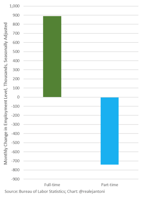 In December, the number of part-time jobs declined by 740,000, while full-time employment shot up by 890,000: