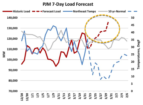 PJM observed demand flows are already pointing higher on the Criterion Mapping Analytics Platform – and the cold is only starting to migrate in.