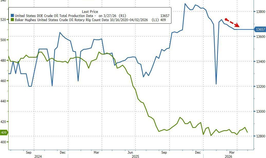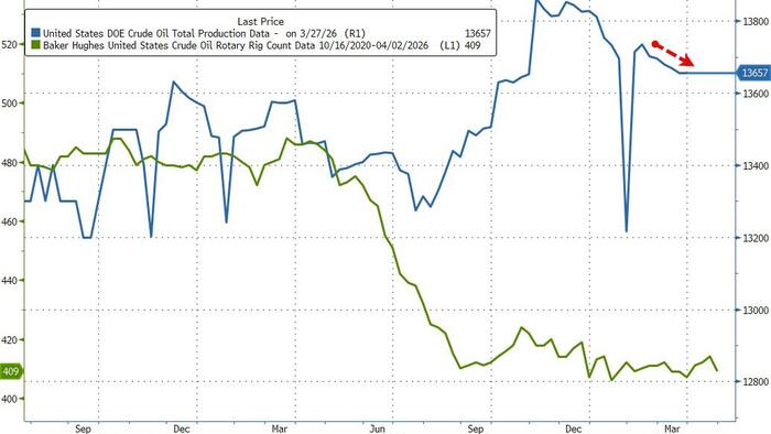WTI Dips After Big Crude Inventory Build, US Production Slows