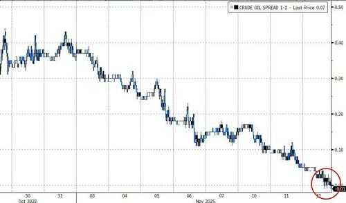 The bearish outlook for next year has triggered a key indicator – WTI’s prompt spread – to sink into contango…