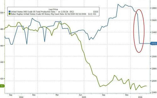 Crude production in the Lower 48 fell to the lowest since November 2024 as freezing temperatures disrupted drilling in the Permian and Bakken formations.