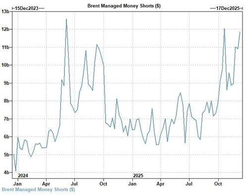 Over the past few weeks, Brent crude positioning grew increasingly short. The last Commitment of Traders report, covering through December 9th, exhibited Managed Money shorts at a 98% 2-year rank.