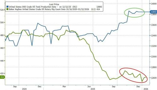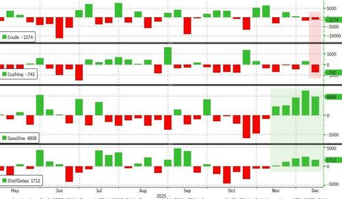 WTI Holds ‘Venezuela Blockade’ Gains After Small Crude Draw, Record US Production