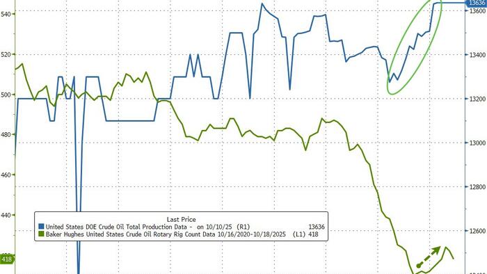 US Crude production rose once again, to a new reocrd high at 13.636mm b/d…