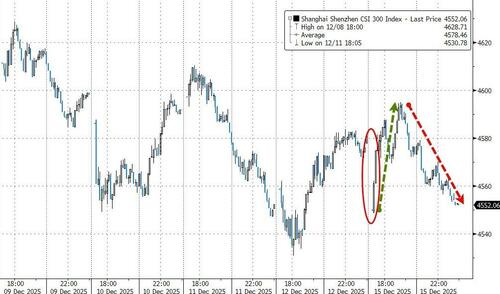 Finally, we note that the initial downturn in Chinese stocks was quickly bid back into positive territory after the ‘bad data’ as it appeared ‘bad news’ would be ‘good news’ from a ‘most stimmies’ perspective, but Xi’s rant dragged stocks down to end the day in the red…
