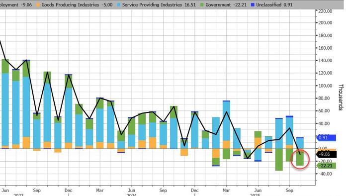 Fast forward one month when the news was far uglier: according to the latest Revelio Labs data, not only was Sept revised almost 50% lower from 60K to 33%, but October was ugly, plunging to -9,100, the second worst print of 2025, and the second worst on record (Revelio only goes back to 2021).