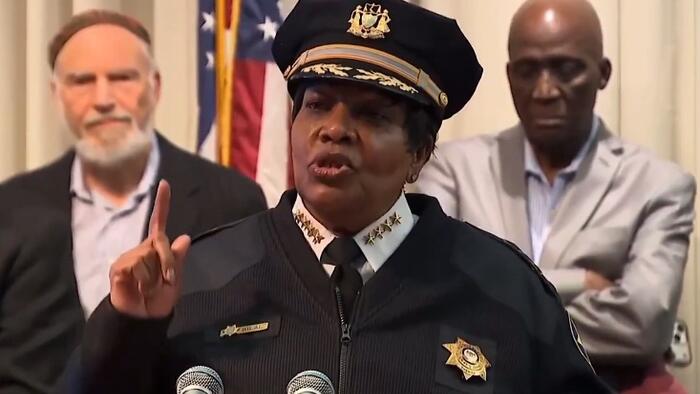 “Those that come into our communities wearing masks to commit crime – and thank God for our District Attorney Larry Krasner, who says he’s gonna lock them up. And I’m saying now, we are not going to whisk you away for them to hide your identity. Because when you do it here, you’re getting arrested.”