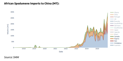To put this chart into context, in LCE terms, 2025 exports of Zimbabwe Spodumene to China totalled 160kt LCE, virtually all their production.